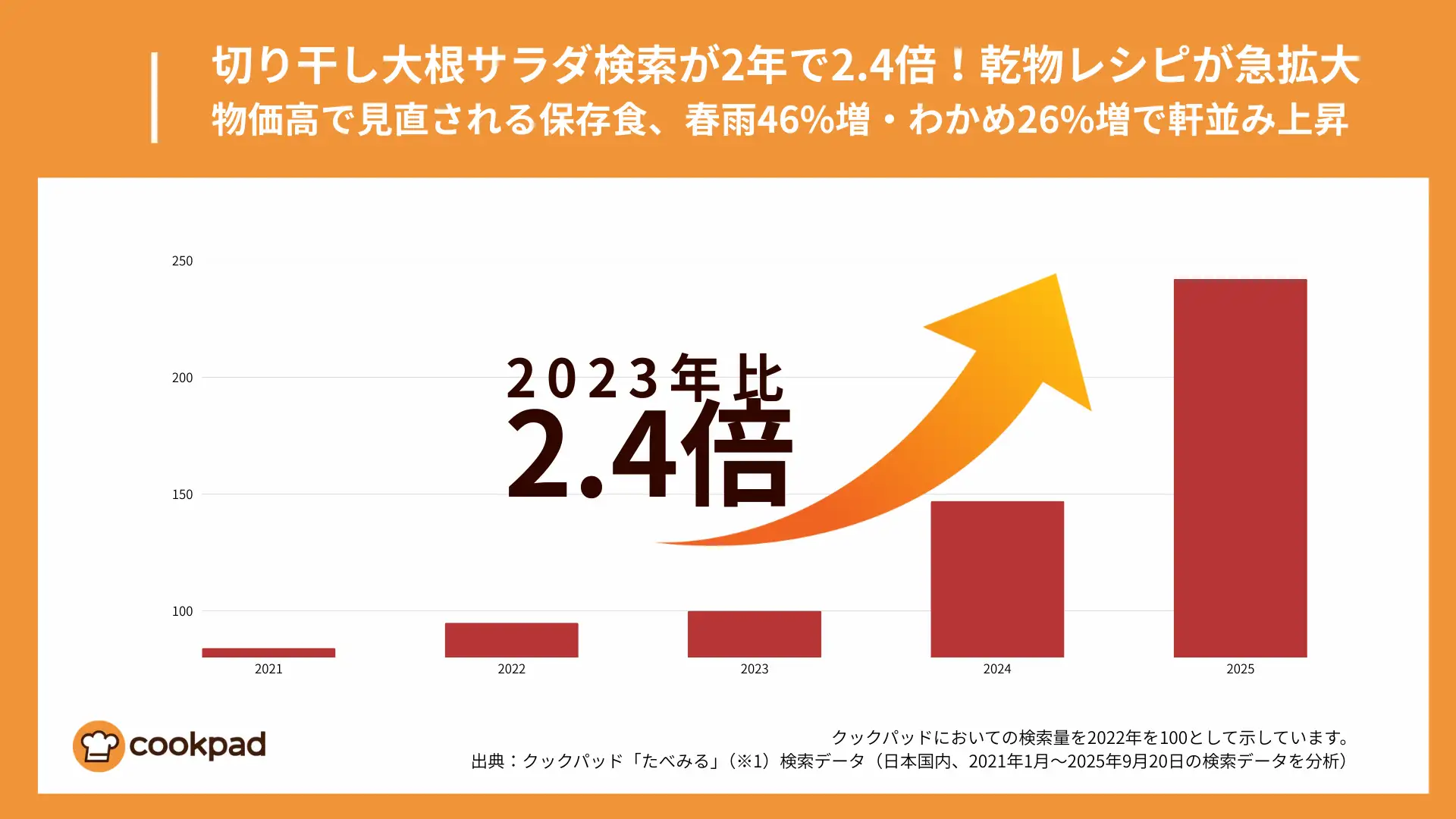 物価高で乾物回帰、切り干し大根サラダ検索3倍・春雨46%増|物価高で見直される保存食、サラダや時短調理で活用法が多様化